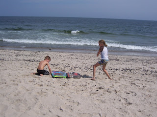 During the summer all of New Jersey goes "down the shore" aka going to the beach. We spent a day at Spring Lake. The beach was covered in dead jellyfish. As soon as we explained to the kids that the dead jelly fish would not hurt them, they had a contest to see who could collect the most in 10 minutes. The contest ended with a jelly fish fight. Not sure who won but is was defiantly not the jelly fish or Spongebob :)